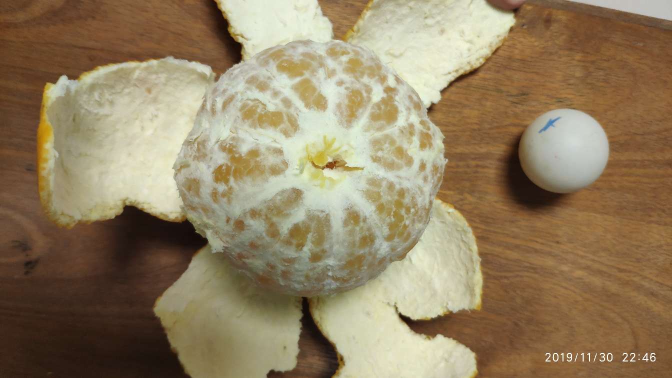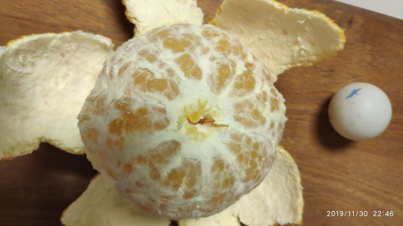 bxjbk 发表于 2019-12-09 19:20 今天吃了个浙江象山红美人,皮薄难剥,肉更细嫩,200元12个果。我种的爱媛皮略厚,易剥,肉质还算嫩,估计砧木不一样。