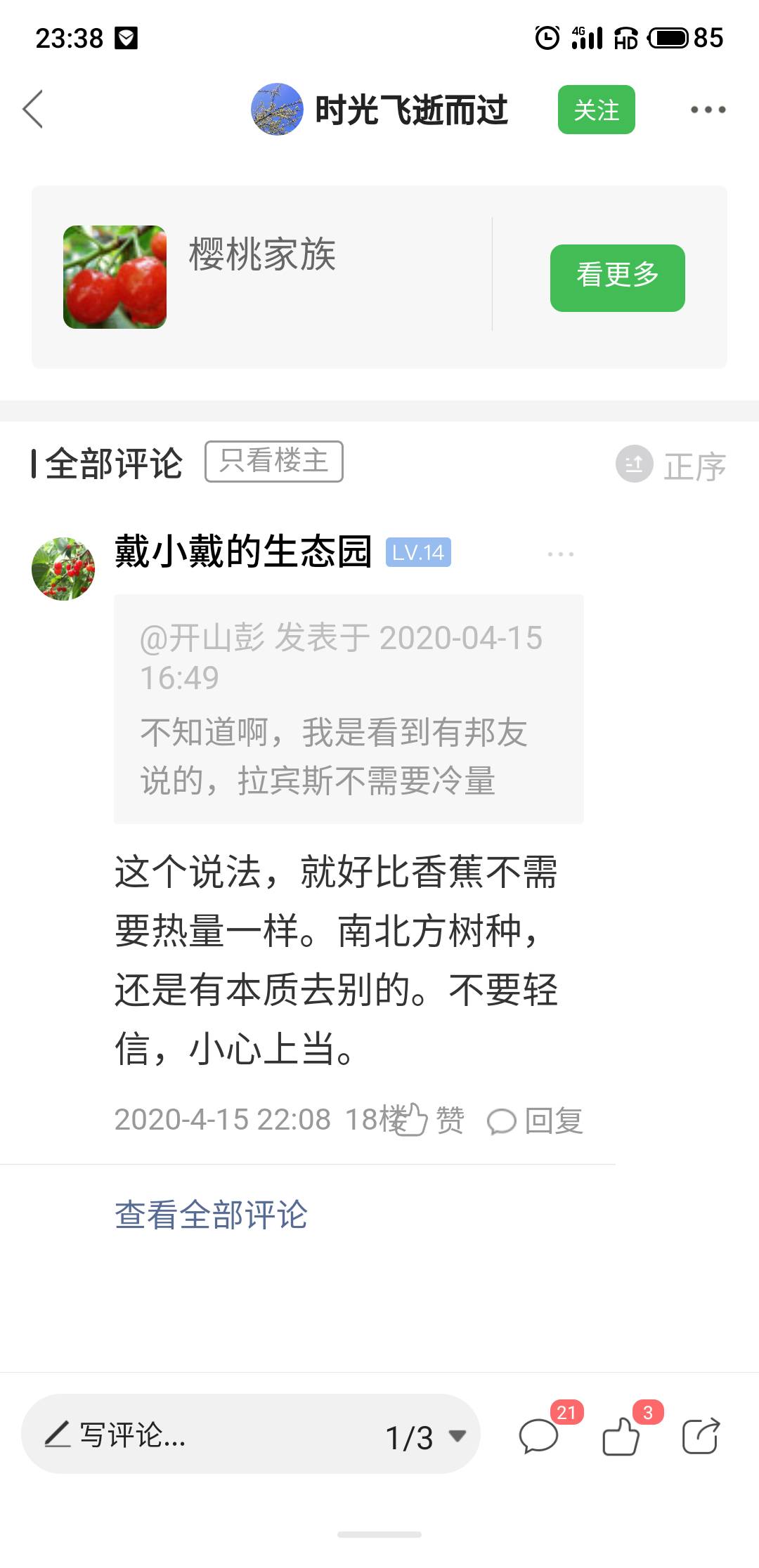 erdierdi123 发表于 2020-06-20 15:03 能不能栽樱桃需冷量只是其中一个方面,南方多雨这一关就可能要了很多樱桃的命,还有高温潮湿等等客观因素,栽棵玩玩可以,真要正儿八经种三思!
