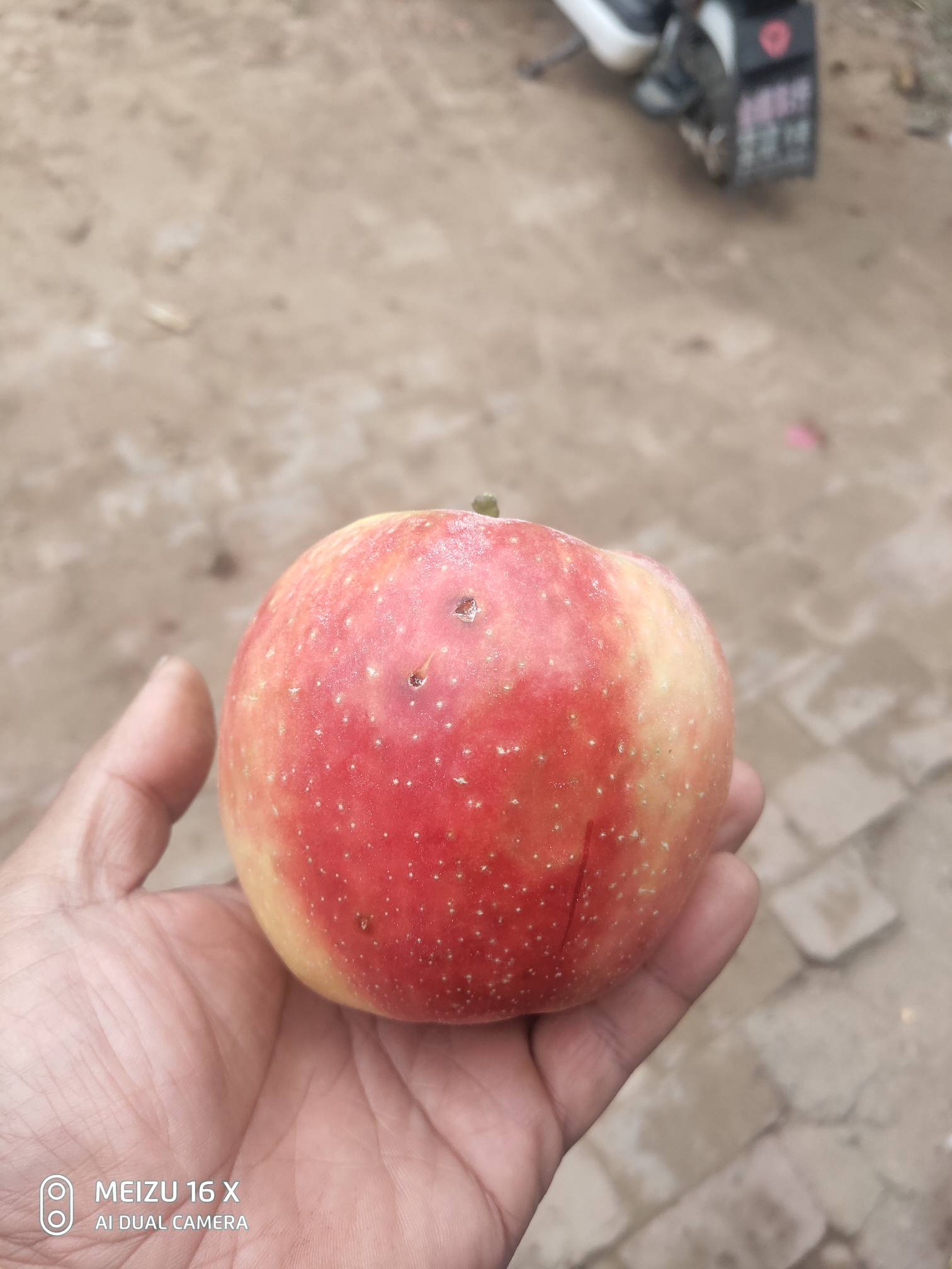 erdierdi123 发表于 2020-09-20 20:56 大仙的条子结了两个苹果,还没上好色,个头很大,现在估计能有90有苦逗病,应该是没施钙肥的原因,不像蜜脆呀,而且敲起来感觉苹果很空,也就是果肉不是很紧密,看果型和当初淑月发给我的果子一样,15号摘的袋子,还没上好色,个人感觉像是一个新的品种,再等一个星期我吃了以后把口感发上来!