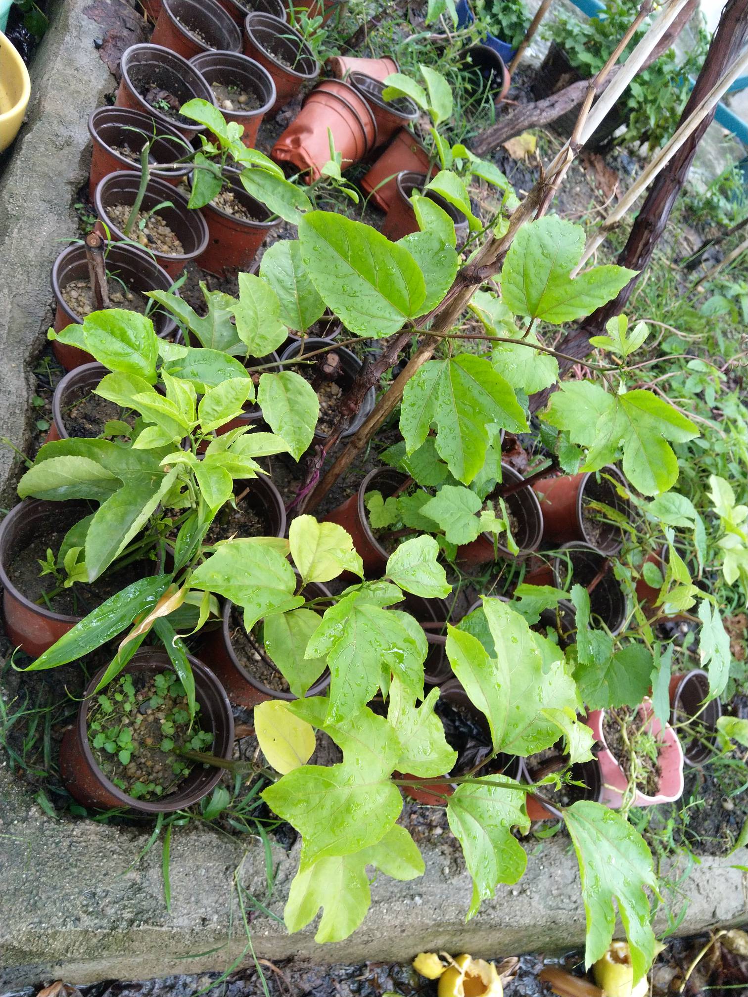 w20170412 发表于 2020-09-13 11:46 百香果有紫香和巨无霸刚插扦的,黄金还没怎么出根
