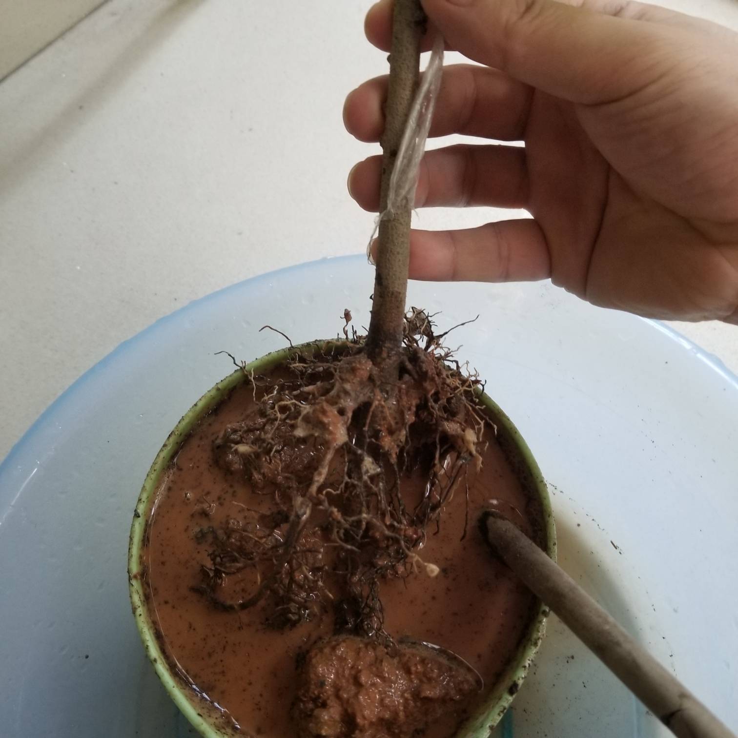 hry88866 发表于 2021-06-07 08:52 我是买回来剪开营养杯,发现是黄土,马上拿盆装上水,放少量生根剂、多菌灵等,把土团慢慢泡松,泡软,把根系完好洗出来,重新配土种下。下一步关键是置于阳光不能直射的位置,缓苗一周即告完成,这个已经成功不少例了