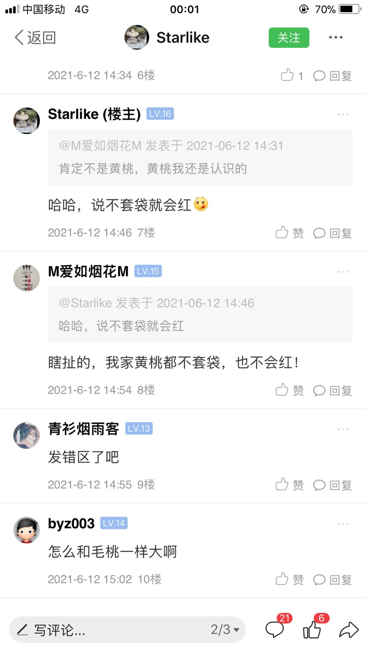 M爱如烟花M 发表于 2021-06-13 07:55 楼主一共三张图,最后一张是干嘛的?区分是不是黄桃主要看什么?看皮还是看肉?我说肉你说皮,有意思吗?! 黄桃不套袋,晒了太阳皮肯定会红,这还用争论吗?!