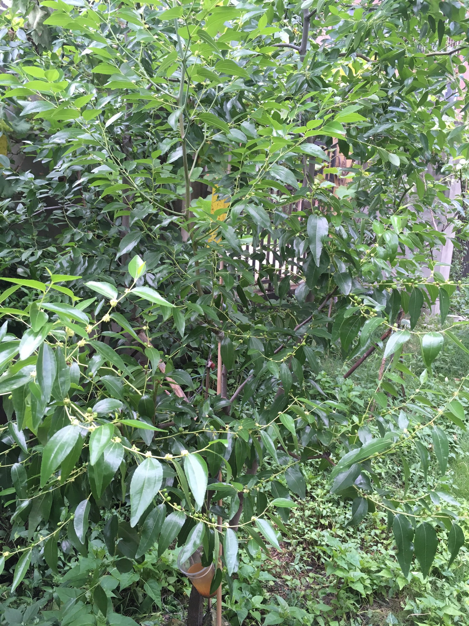 xywfy 发表于 2021-06-15 06:12 三主干型,只有一枝环剥的,果多,另两个枝没什么果,可能是没环剥的原因,也可能是品种原因,多的那枝嫁接的,以前在别的小区看到的,绿化树,味道不错,