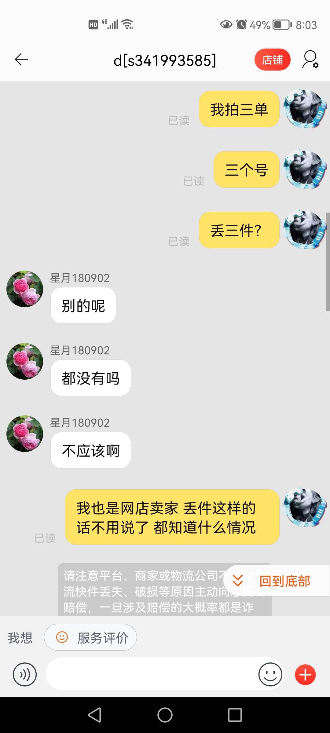 梦醒人散 发表于 2021-12-27 20:09 他已经玩套路了,告诉我丢件了,哈哈 我就是开网店的他想要玩虚假发货这套路 到了默认收货时间自动确认收 ...