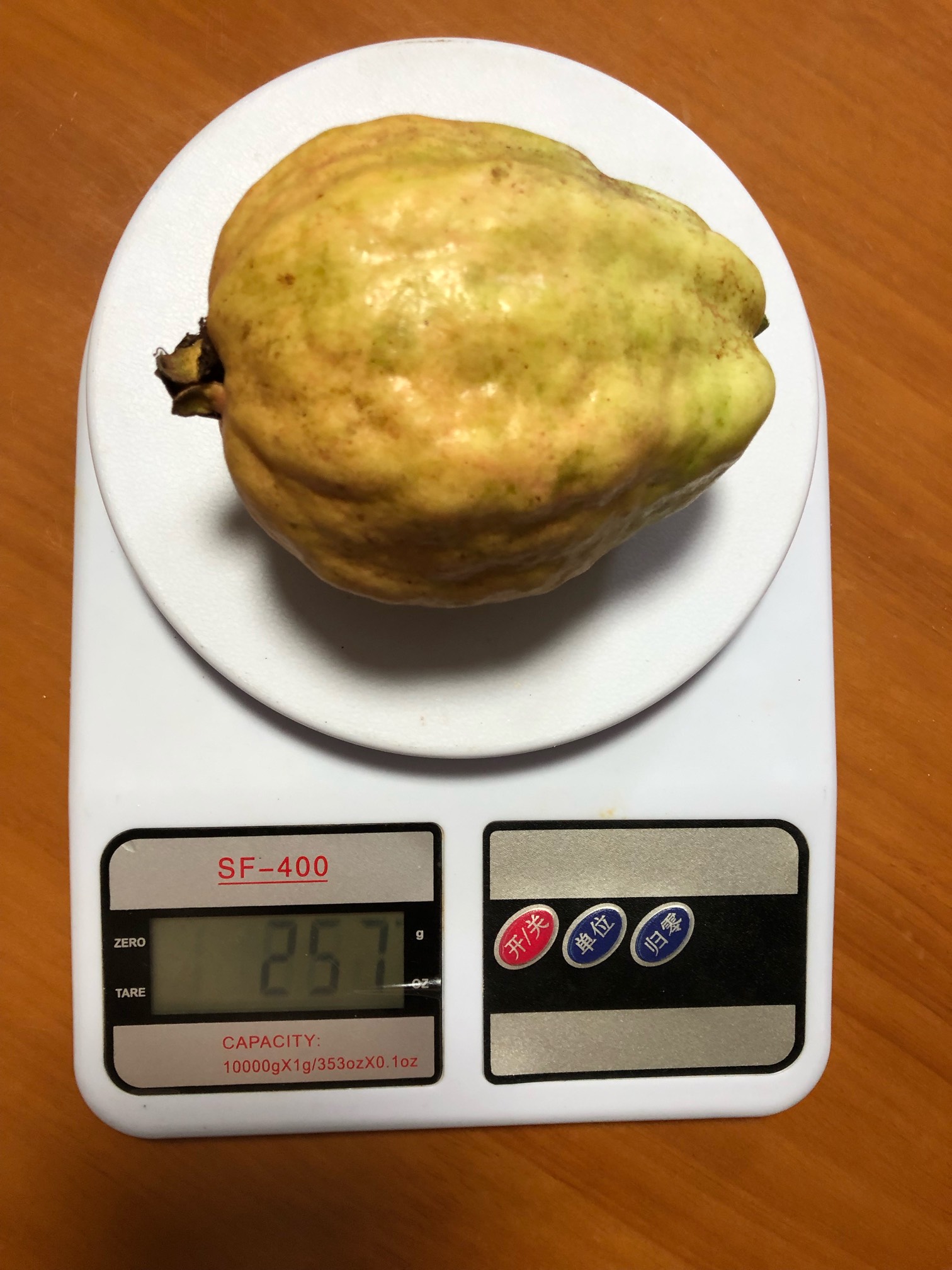 疯狂之神 发表于 2022-10-18 00:41 赶在台风,雨水前,今晚再摘一个,甜度稍微提升上来了。不管嫁接还是高压苗,最近的果型全是这种,跟珍珠番石榴相似,说明了一些问题。