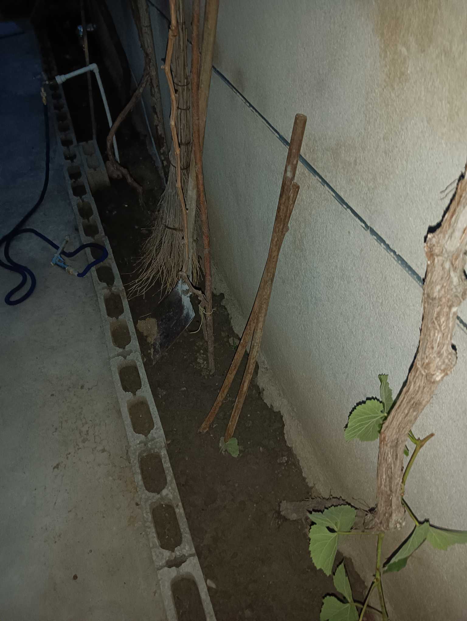 平静得不行 发表于 2023-06-18 18:46 水龙头到垃圾桶是我的店前空间,二楼屋顶种着无花果就是葡萄主杆要爬的距离。地面软水管的位置就是开孔的大概位置。