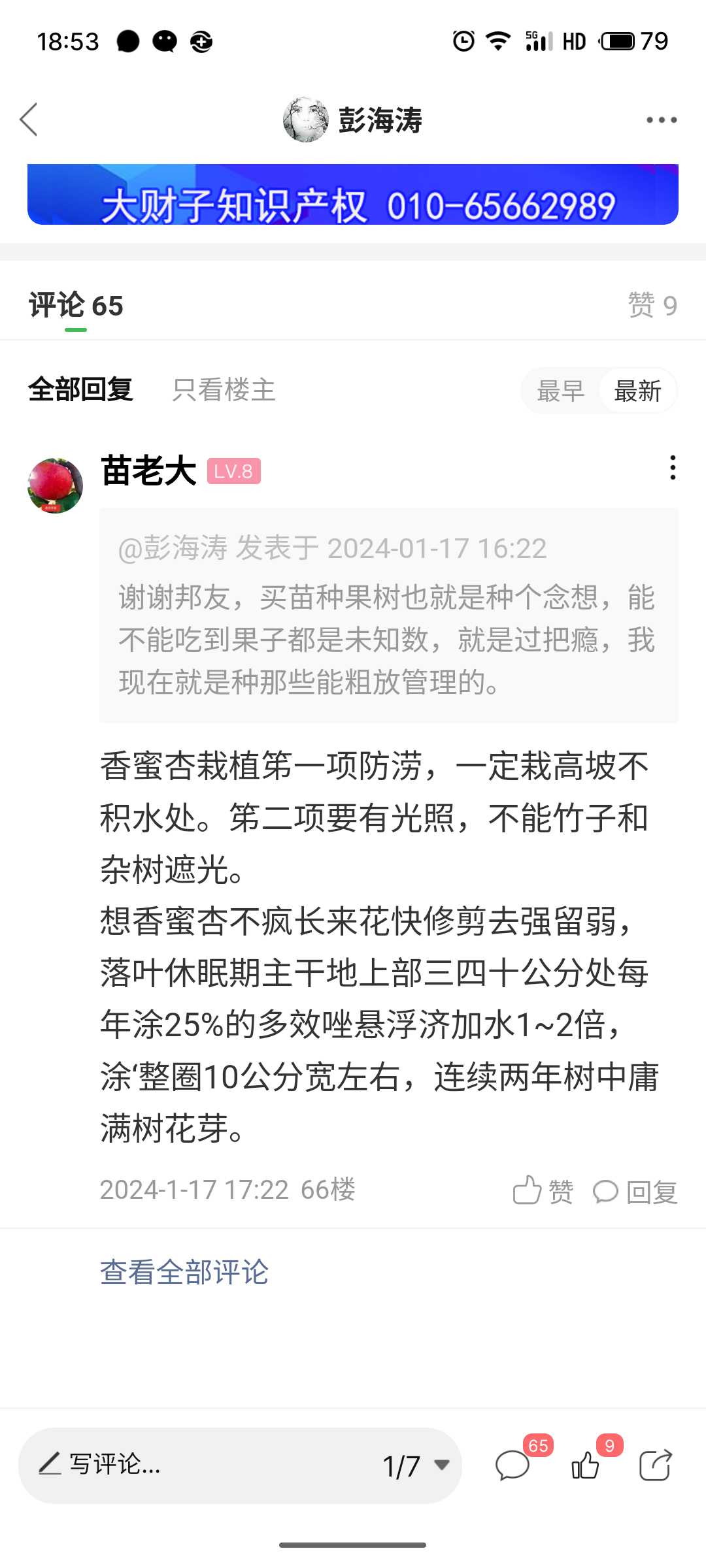 积翠园 发表于 2024-01-22 11:21 香蜜杏雌蕊败育太高,得长到一定年限和粗度才能用化控这个方法。日紫我们个人都不使用化控。 修剪去强留弱是可以的,但是我们整体修剪讲究一个平衡,总体上留的是中庸健壮的枝条并不是说弱的都留,也不是弱的一概去掉,有时候留强枝也没问题,我们对发出的枝条长到一定长度还要进行管理。 日紫采用大树型,一干,几个叉都可以,尽量不重剪。