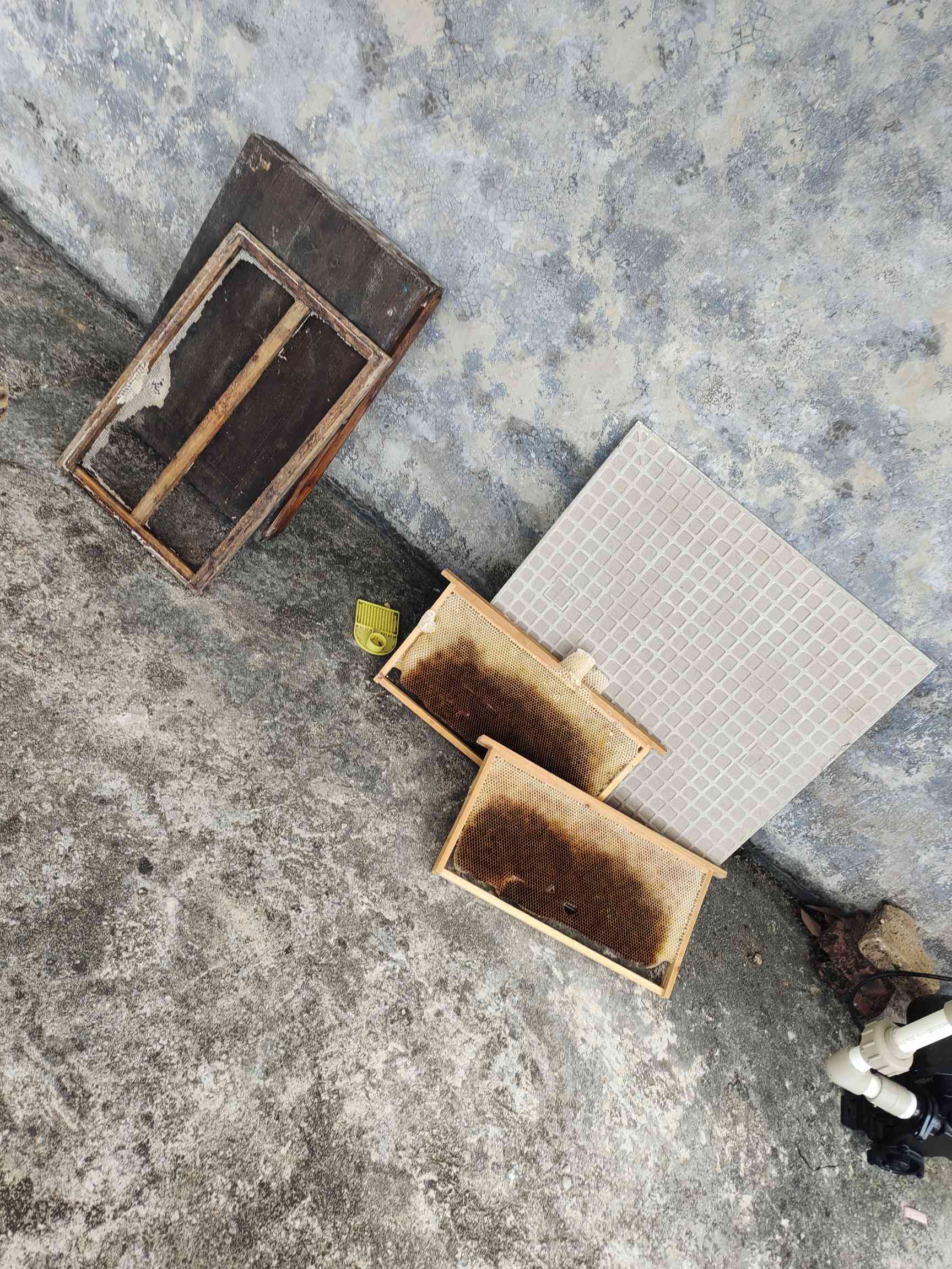Judos 发表于 2025-8-1 22:50 今晚7点收蜂,忙活了一个小时,只收了一半。井盖背面有5个脾,最大的是中间那个,有半米长,5脾基座连在 ...
