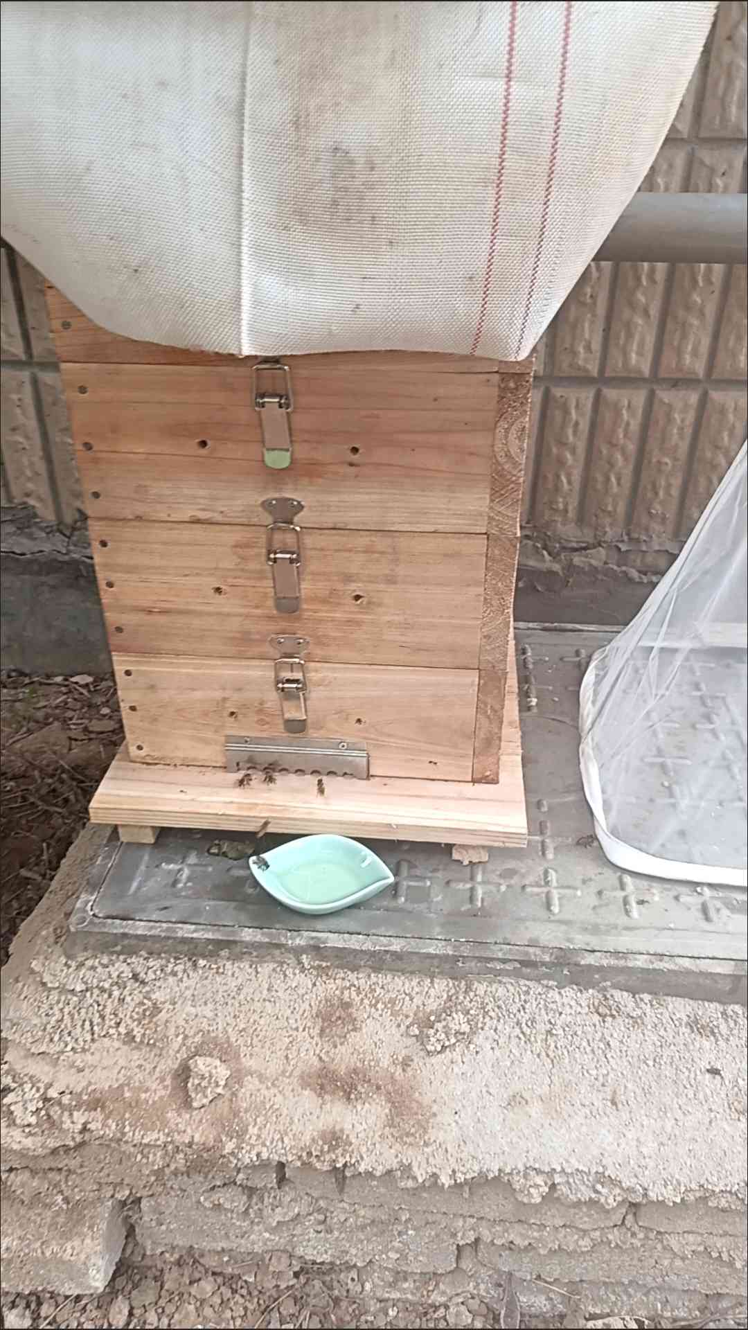 aassdd 发表于 2025-07-27 01:28 这个地方估计是公共地方了,要及早收了,免得人家快过你。准备蜂王笼,蜂王夹,收蜂笼,蜂衣,胶手套。 在早晨天刚大亮气温低的时候收蜂,主要是避免中午气温高巢脾发软塌下来压死蜂王。小心掀起井盖一条缝,要绝对避免掀起井盖过程中勾不住井盖又掉了下来,观察巢脾是不是做在井盖背面,巢脾的方向是怎样,如果是做在井盖背面就顺着巢脾的纵向180度翻起井盖放在地上。如果巢脾塌了要立即扶起来查看有无压住蜂王。 有人习惯收蜂顺便收蜂王,我就习惯先收蜂王再收蜂,缺点是要费点时间,优点是一旦收到蜂王就百分百能收到蜂群。前者是在蜂巢上面挂收蜂笼,裙摆下方要贴着蜂巢方便蜜蜂顺着裙摆爬上收蜂笼。轻轻震动巢脾,蜜蜂就会结队爬入收蜂笼了。如果你用的是新买的收蜂笼,里面最好用蜂蜡擦一擦,如果无蜂蜡就不要用这种方法收了,蜜蜂不喜欢的。 后者是手持蜂王夹,仔细观察蜂群,轻轻吹气驱散蜂群,蜂王会时不时出现在蜂群外侧,一会又钻入蜂群了,要眼明手快夹住它又不能夹伤它,这个过程要花点时间。用细铁丝把蜂王夹勾在收蜂笼里面,移到离开蜂群二三米远的地方吊挂着,用树枝轻扫蜂群让它们起飞,2分钟之内蜂群就会全部飞入收蜂笼,继续挂半小时,外出的采集蜂就能全部回来收齐。看你的描述这群蜂应该来了不久,还没有幼蜂出房,所以不用担心有幼蜂还不会学飞,不能进入收蜂笼。 傍晚就可以过箱了,尽量带子脾过箱,蜂群易稳定下来。过箱之前不戴手套伸手入去蜂群拿走蜂王夹,动作慢点不会被叮的,蜂王夹放在蜂箱底部,抖蜂过箱,蜂群平静下来之后打开箱盖张开夹子靠近蜂群,看到蜂王爬出来就可以关闭蜂箱盖了。这样的操作能保证抖蜂时不会摔死摔伤蜂王。 以上是比较详细的收蜂方法了。