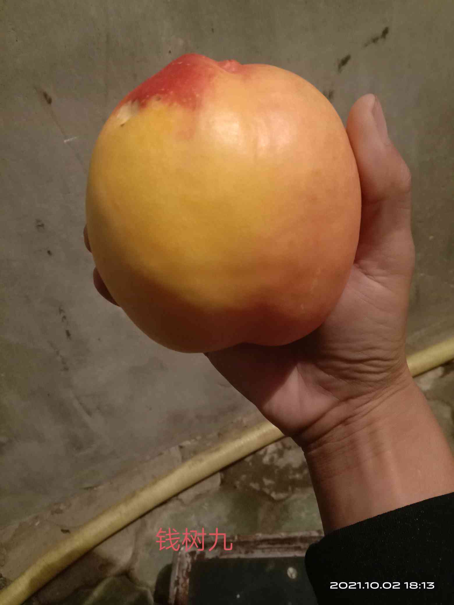莲山日文 发表于 2025-08-20 12:25 钱树九有圆的,椭圆的,尖大,和尖小。。。一般第一年结果尖大,树越老,果越大,尖越小。也分管理和气候。。我这目前尖都小了,因为我年年扩种,有点好地都种钱树九了,小树第一年结果一样有尖。但是这个成熟期,目前没发现有离核大油桃,所以。比天后略早几天。别说离核大油桃,大的油桃都少。