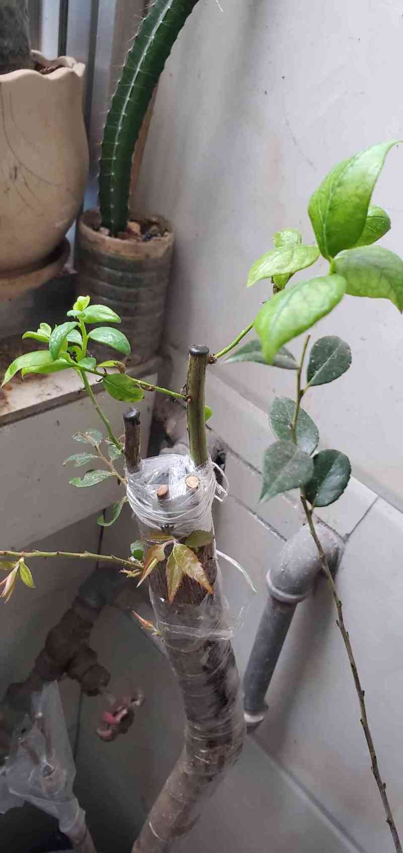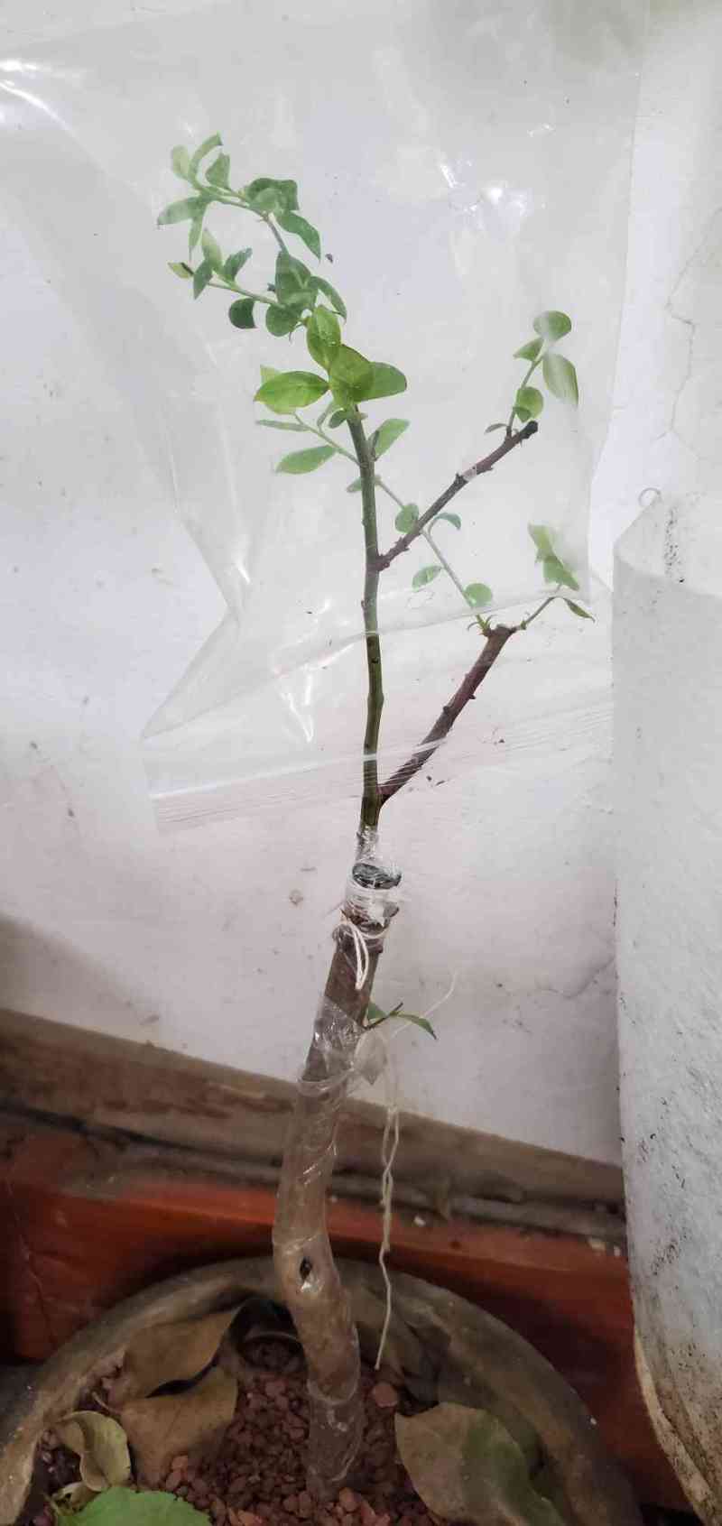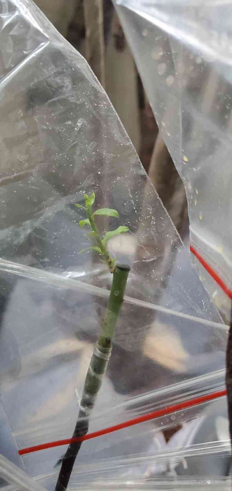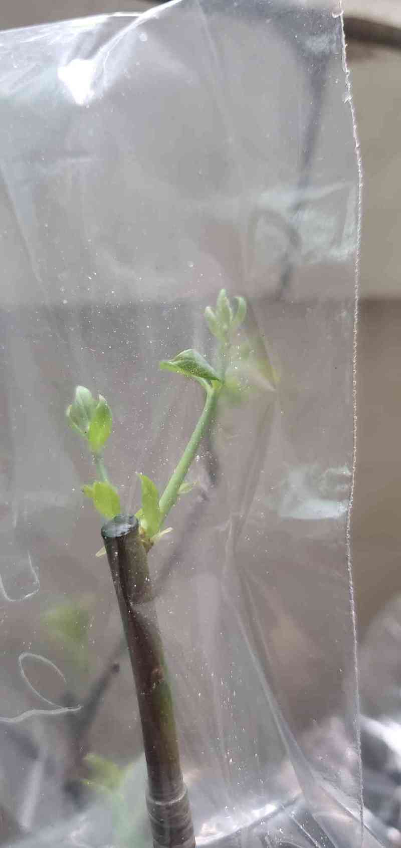 瓜牛 发表于 2026-03-21 19:01 绿枝条的用截面对接方式嫁接目前看效果还是比较好的。这方法嫁接的六个枝条现在全部发芽,而且已经看到有愈合组织融合的现象。看来还是嫩些的枝条活力更好。当然也可能是宽叶的乌饭亲和性更好吧。