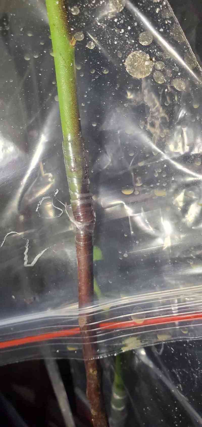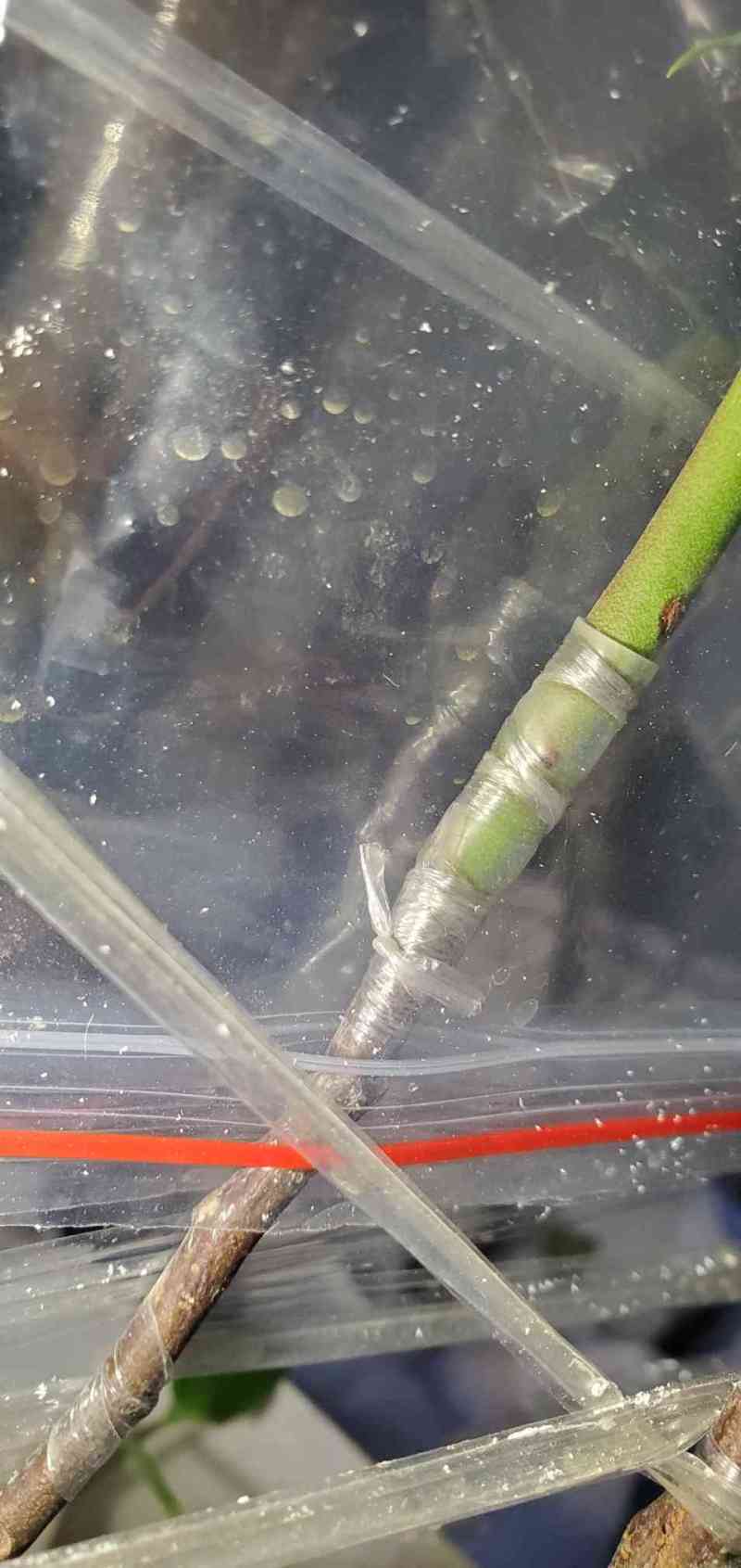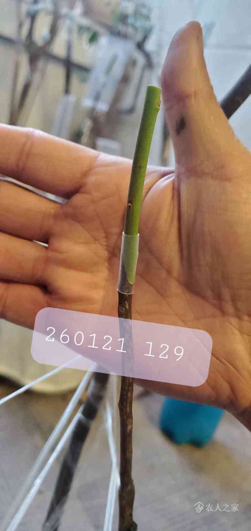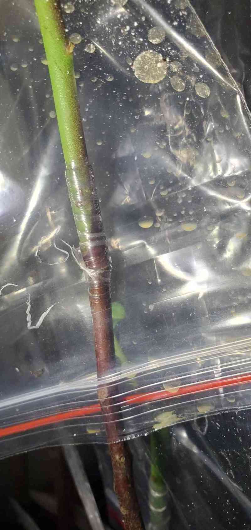 瓜牛 发表于 2026-01-23 16:11 昨天这颗枝条比较新鲜,也比较细,和接穗大小很接近,尝试用截面对接方式嫁接。
