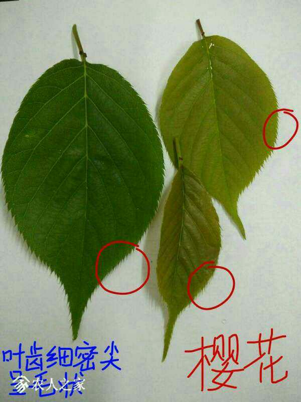 wan138 发表于 2017-4-27 12:41 樱花叶边缘锯齿细密。樱桃叶边缘锯齿稍大。