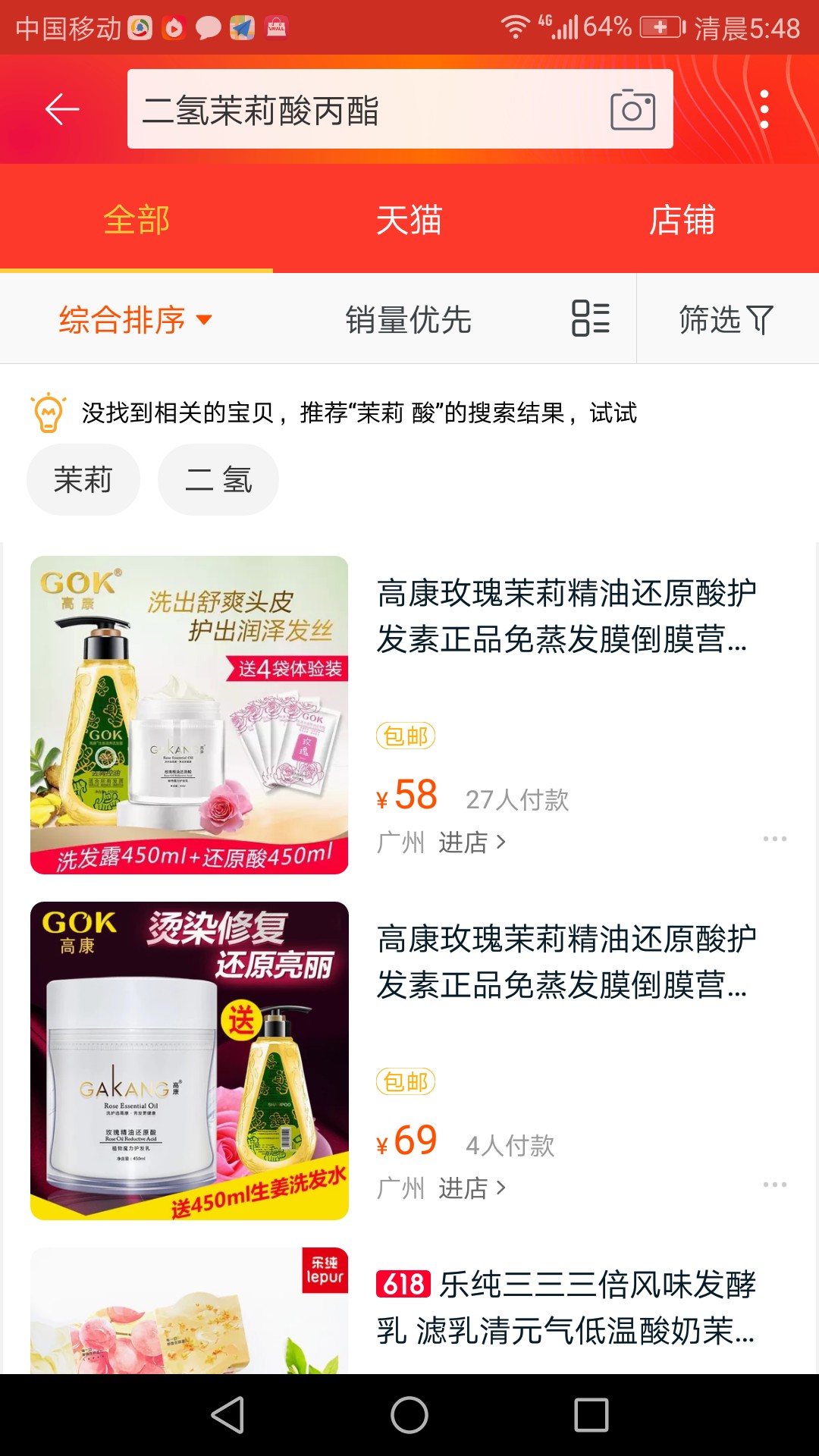 13479099337 发表于 2018-06-13 06:01 这是我在淘宝上搜索结果:找不到二氢茉莉酸丙酯的相关资料,能分享一下果立红淘宝店网址吗?谢谢!