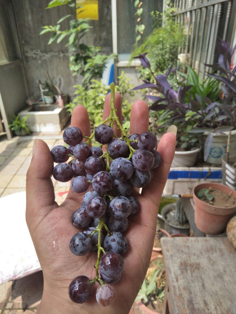 彭健华 发表于 2018-06-26 22:48 我不清楚呀,小白呀,品种盲,口味微酸,熟透很甜,有玫瑰香味,皮软紫黑色可吃不涩,萌芽时梢尖微红,极易成花,现在发的新梢都带花的,请前辈鉴定一下