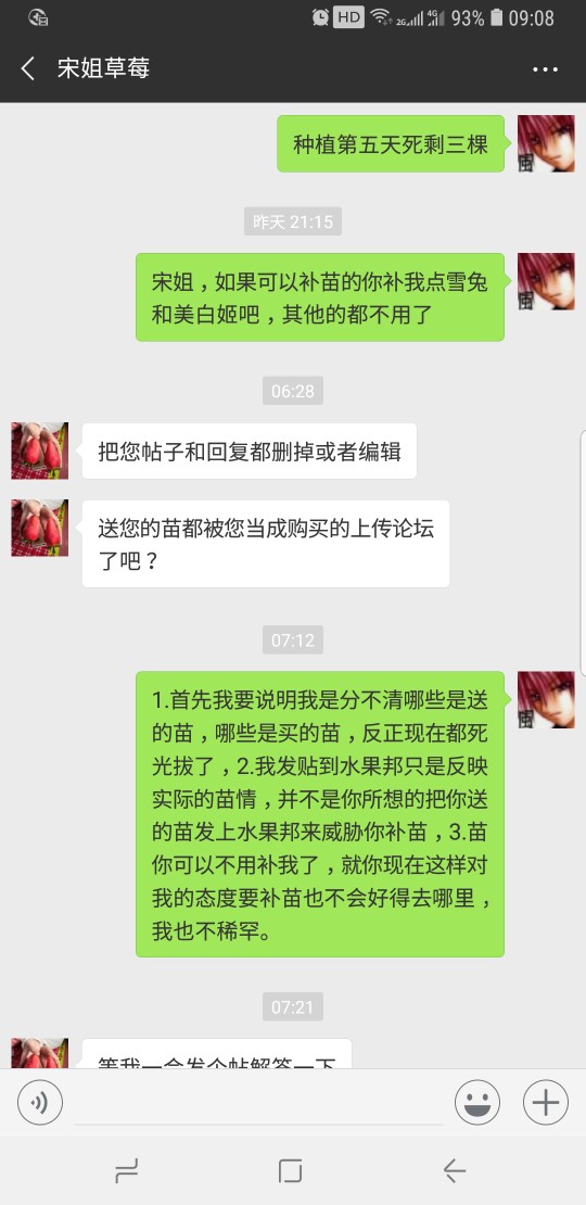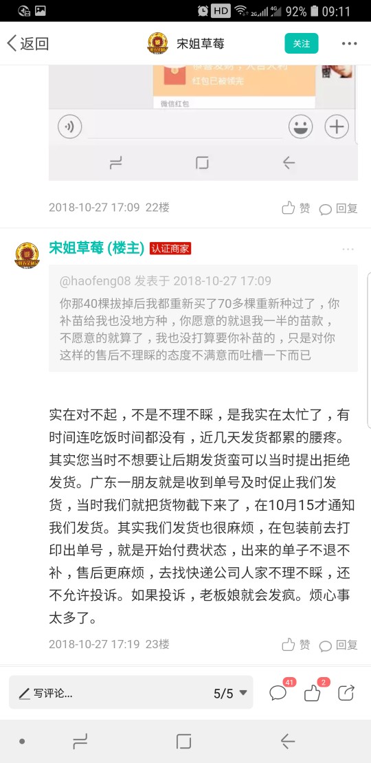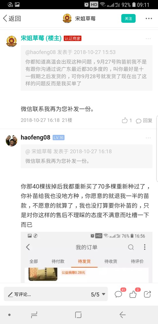 haofeng08 发表于 2018-10-29 18:28 你就别来搞笑了,苗是9.27号下单到10.26号这段时间我哪里有叫过你补苗和退苗款,是你自己10.27号下午4点27 ...