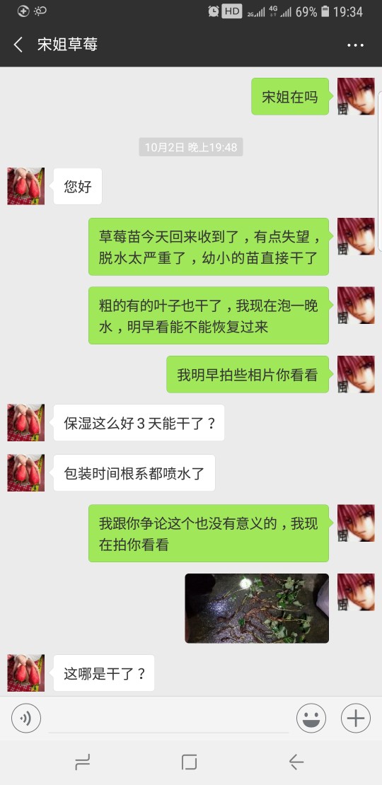 haofeng08 发表于 2018-10-29 19:40 自己看清楚记录,我当晚收到苗就就干了发给你看了,也有跟你说试下泡一晚的水看能不能缓过来,如果不可以泡一晚水的你怎么当时不说清楚反而现在来拿这个来说自己的苗没问题,这就是你所谓的售后服务了。