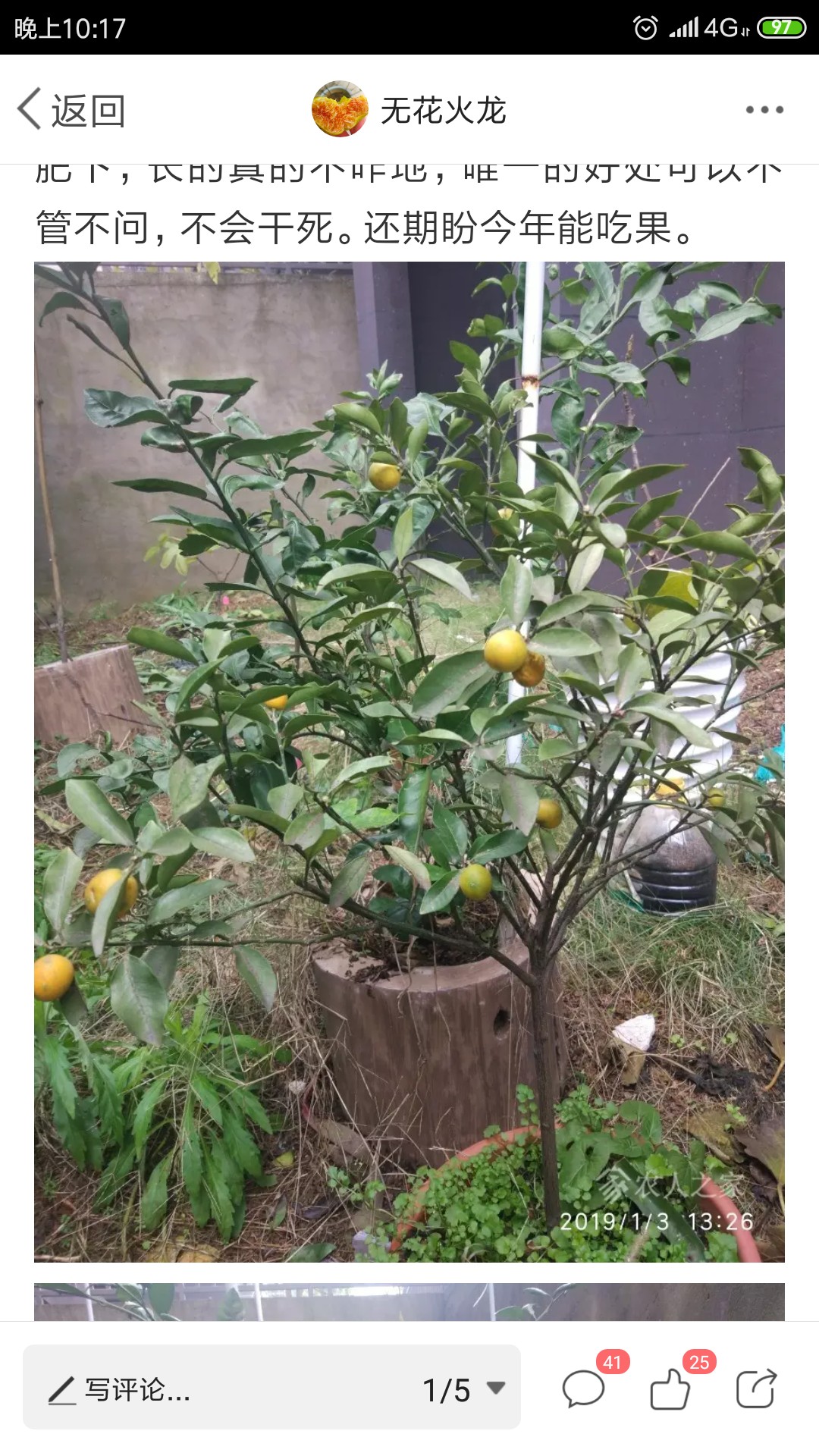 无花火龙 发表于 2019-01-18 22:28 今年买的橘子和金桔来的,没多大,来的时候都开花了,橘子没坐果,今年今年结了20来个果子。