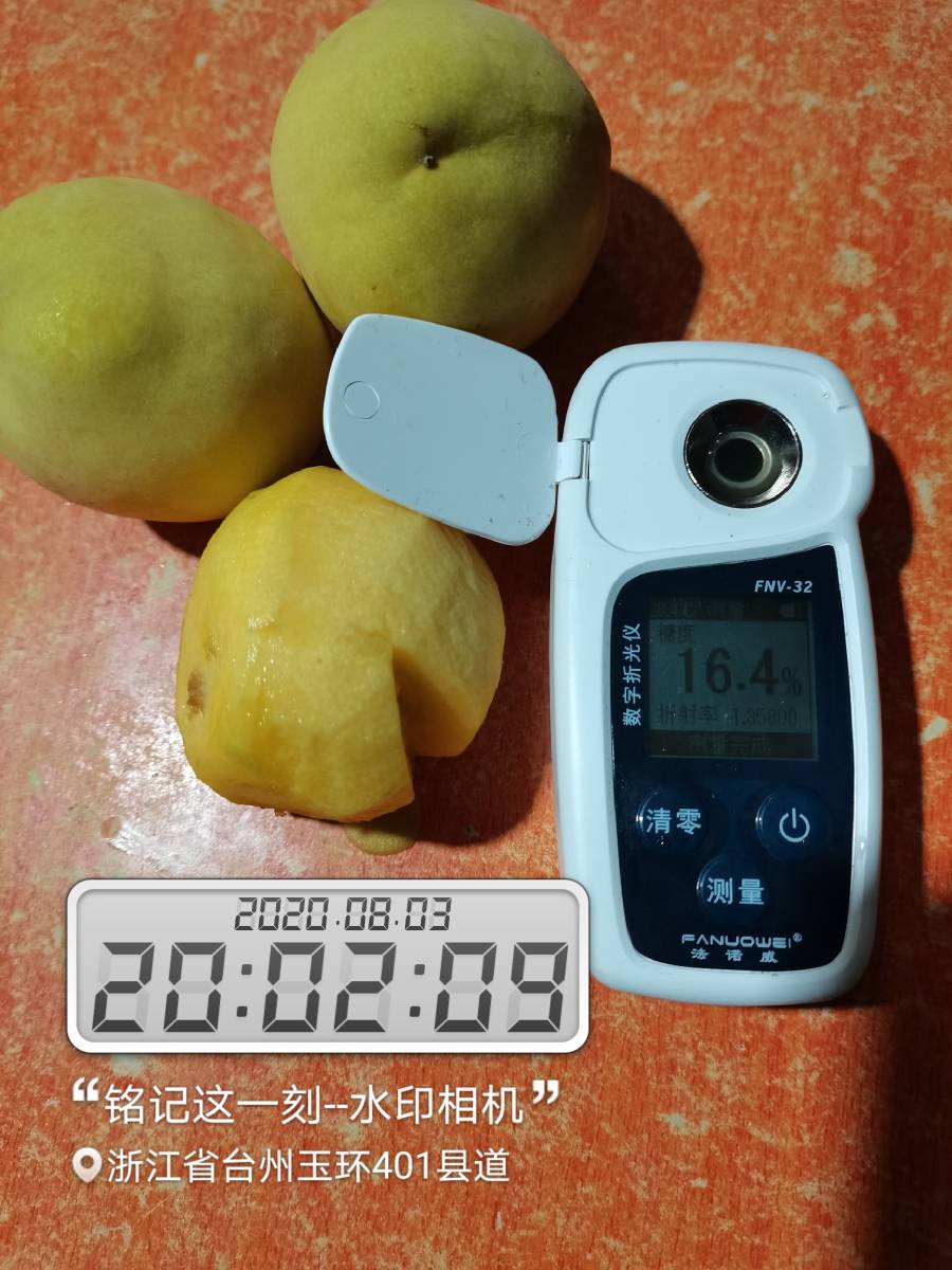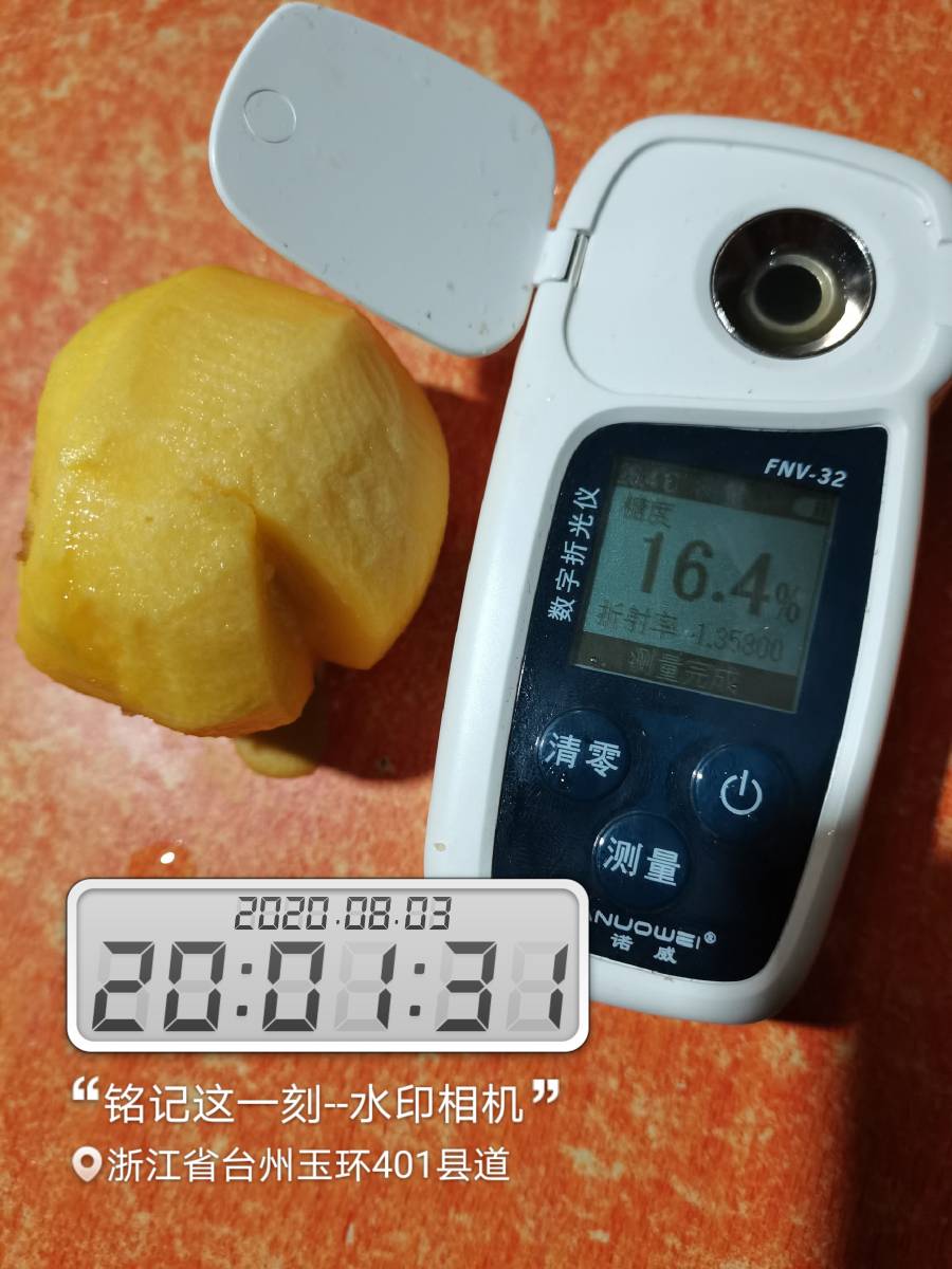胡建余 发表于 2020-08-25 22:43 720今年只开花不结果,820很丰产,糖度16以上,纯甜无敢,近核处无红色素,个头中等,硬度很好,是个不错的黄桃品种。