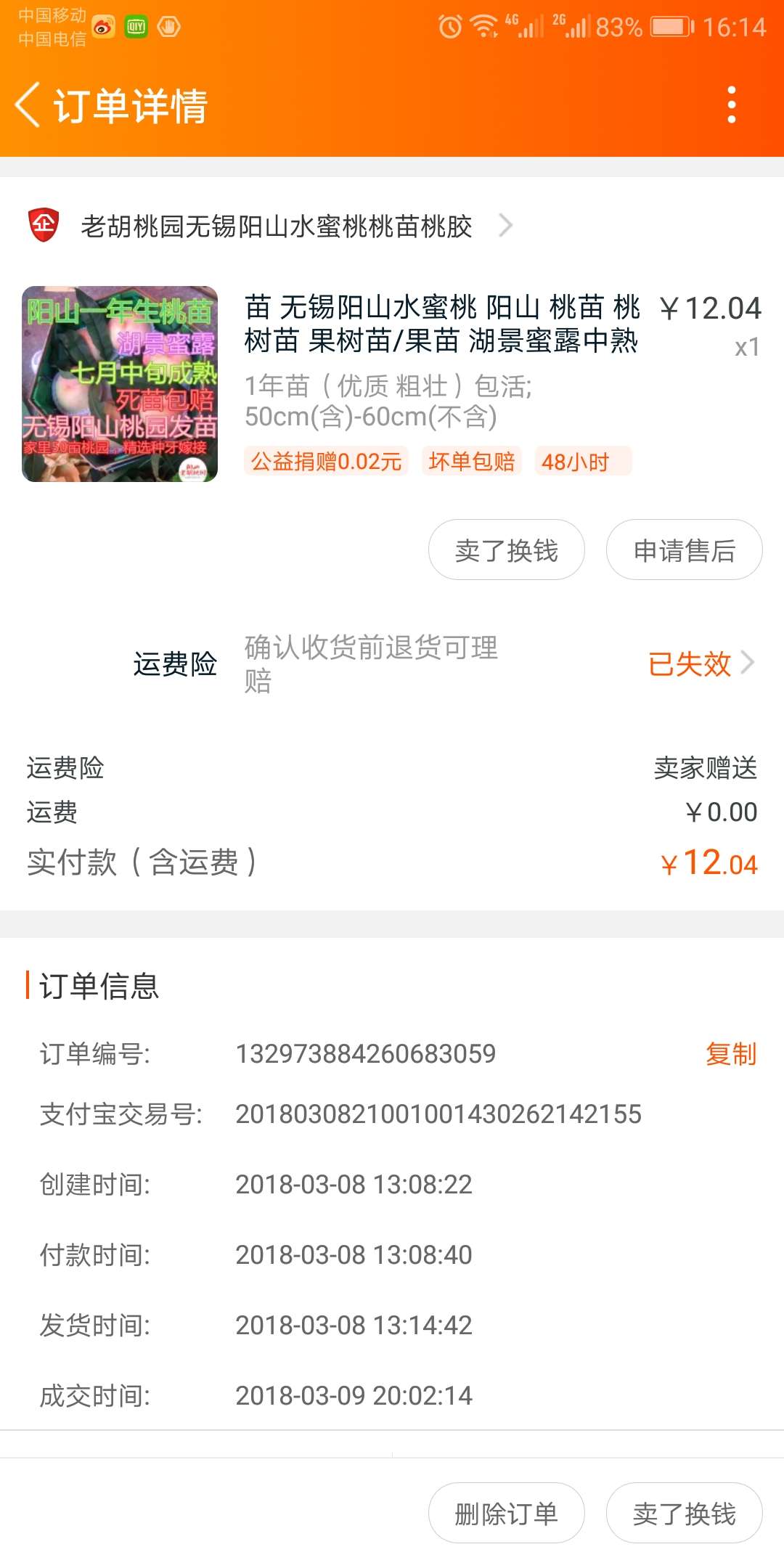 无题水果 发表于 2019-05-28 08:16 他就卖了那一年的桃苗子,我要苗后和他在微信上反应情况,从不回复。