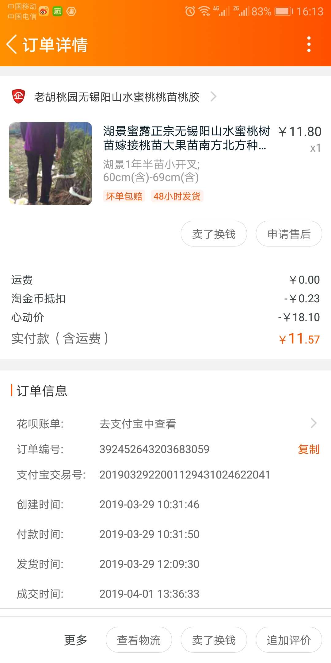chenlin1980727 发表于 2019-05-28 12:32 所有说 你管理技术不行 你还一直认为是别人苗子的错 我翻了好久 找到当初买老胡苗子的交易记录